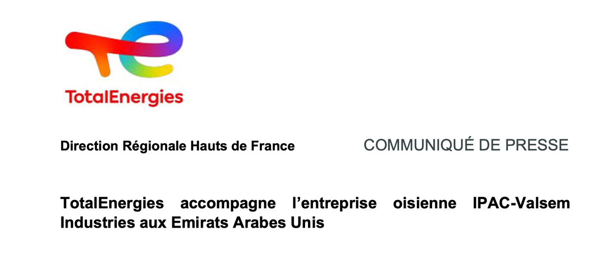 TotalEnergies accompagne l’entreprise oisienne Valsem Industries / IPAC‑Valsem SPECIALIZED PACKING aux Emirats Arabes Unis